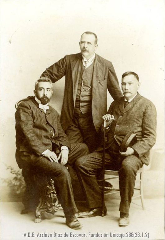 Fotografía de Benito Pérez Galdós, Narciso Díaz de Escovar y Arturo Reyes (Archivo Díaz de Escovar).