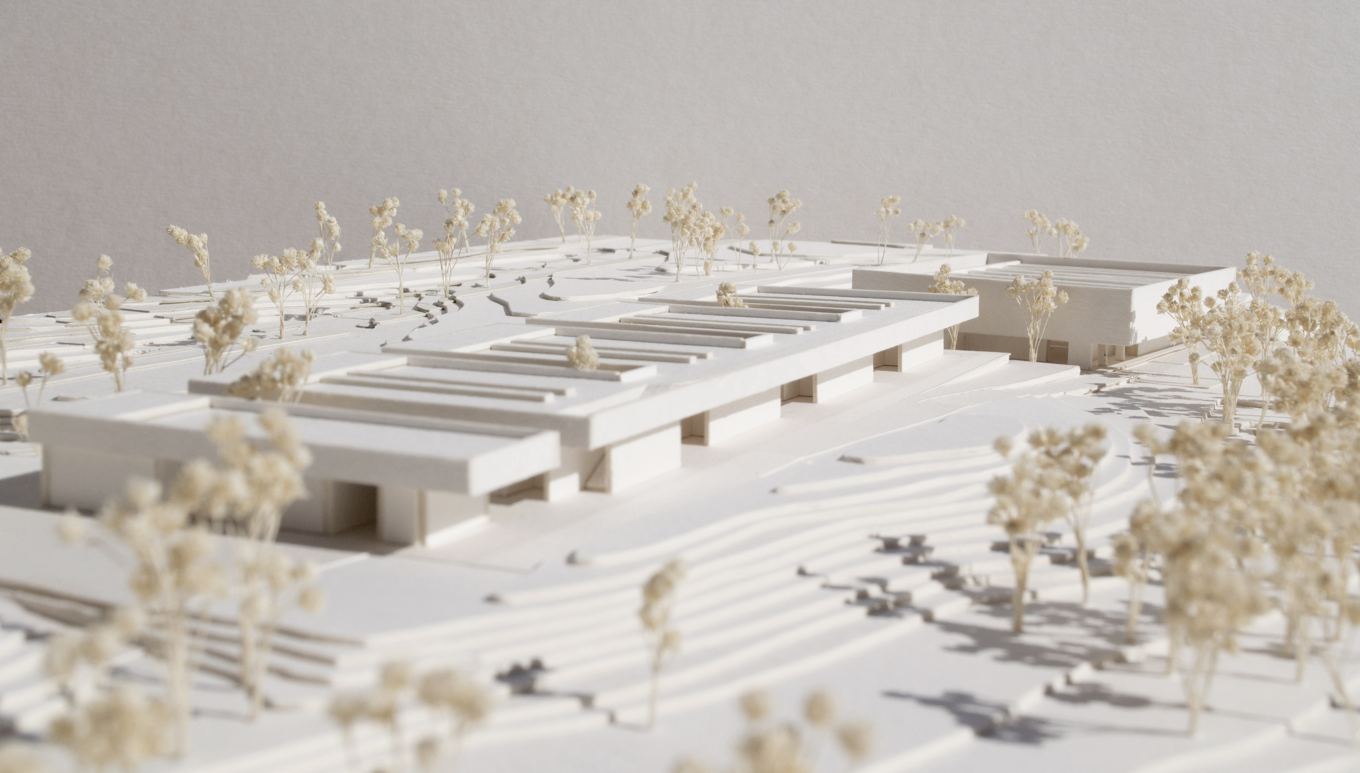 cota de cubierta, se gira y desciende 3 metros. Responde así a la vegetación y la topografía que lo rodean. La ordenación y