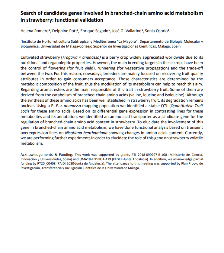 Regarding aroma, esters are the main responsible of this trait in strawberry fruit. Some of them are