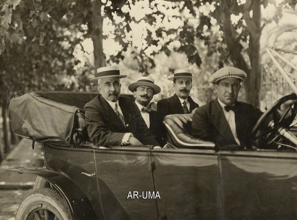 Fotografía de Arturo Reyes (1º por la izquierda) camino de la comida homenaje que recibió el 6 de septiembre de 1912 en el restaurante Hernán Cortés de Málaga